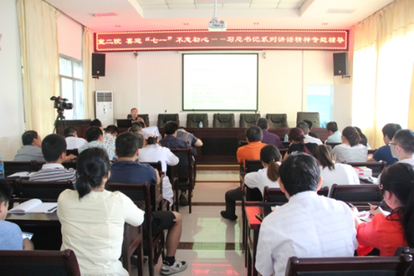 为喜迎 “七一”.不忘初心,我院根据县组织部《关于6月“党员活动日”主题和参考内容的补充通知》的文件精神, 我院积极开展“忆党史.感党恩.跟党走”讲党课活动。2017年6月6日下午,我院邀请县委党校何军老师为全院党员上了一堂丰富多彩的党课。