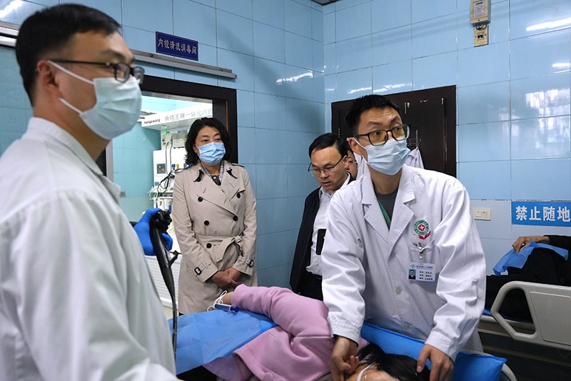易群书记一行先到医院门诊部、功能医技科室和部分住院科室进行实地查看,详细询问了医院业务开展情况以及上消化道早癌筛查项目情况。随后,易群书记一行在医院小会议室召开了座谈会。会上,杨仕钊同志对易群书记的到来表示了热烈的欢迎,并介绍了宣汉县的医疗卫生工作情况。我院党总支书记李念汇报了医院的基本情况和目前发展面临的瓶颈和困惑,表达了和省肿瘤医院建立帮扶机制协助人才培养、学科建设从而促进医院高质量发展的期盼。易群书记作为业务上的专家、管理上的行家,结合自身经历和体会,从党建业务融合发展、学科建设错位发展、人才培养梯队发展、信息建设创新发展、运营管理精细发展、安全生产稳步发展五个方面进行了分享和交流,同时表示将以此次“智兴天府专家行”为契机,加强两家医院联系,在远程会诊、科研项目、学习培训等为医院提供平台,推动医院管理、业务上新台阶。会上医院班子成员及部分职能科室还就管理上的难点、疑点和易群书记进行了请教和深度交流。